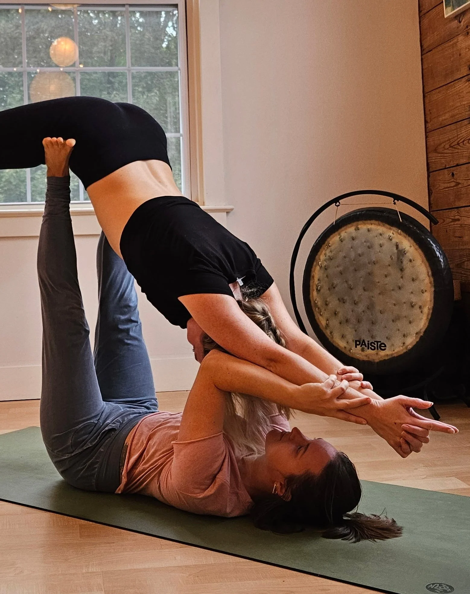 This class celebrates the lunar side of acroyoga; therapeutic flying and thai yoga bodywork! Whether you are a total beginner or advanced acrobat, this class provides a safe environment to learn soothing and restorative techniques. The class will begin with therapeutic flying which is a technique where a flyer is passively receiving spinal elongation, stretching, and bodywork while being supported by a base who is in an L-basing position. The base uses their feet and hands to gently move the flyer through various postures to access this therapeutic experience. It is encouraged to perform all roles including spotting. You will then be guided through both giving and receiving Thai Bodywork. Working in pairs you will follow along to clear and easy-to-follow prompts in order to have a deeply relaxing and connected experience.